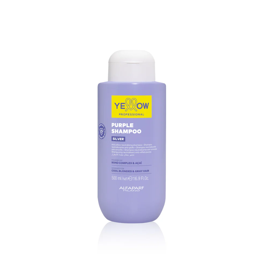 Yellow Professional Silver  anti-amarillo diseñado para realzar y mantener la belleza de los cabellos rubios, grises o blancos de tonos fríos. Mientras limpia, su pigmento violeta elimina los tonos amarillos/naranja restaurando el color deseado. ¡Al fin tendrás tu cabello soñado!
